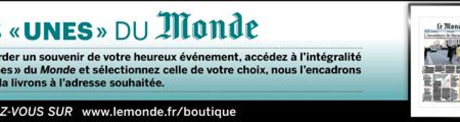 Pour garder un souvenir de votre heureux événement, accédez à l’intégralité des « unes » du Monde et sélectionnez celle de votre choix, nous l’encadrons et vous la livrons à l’adresse souhaitée.
